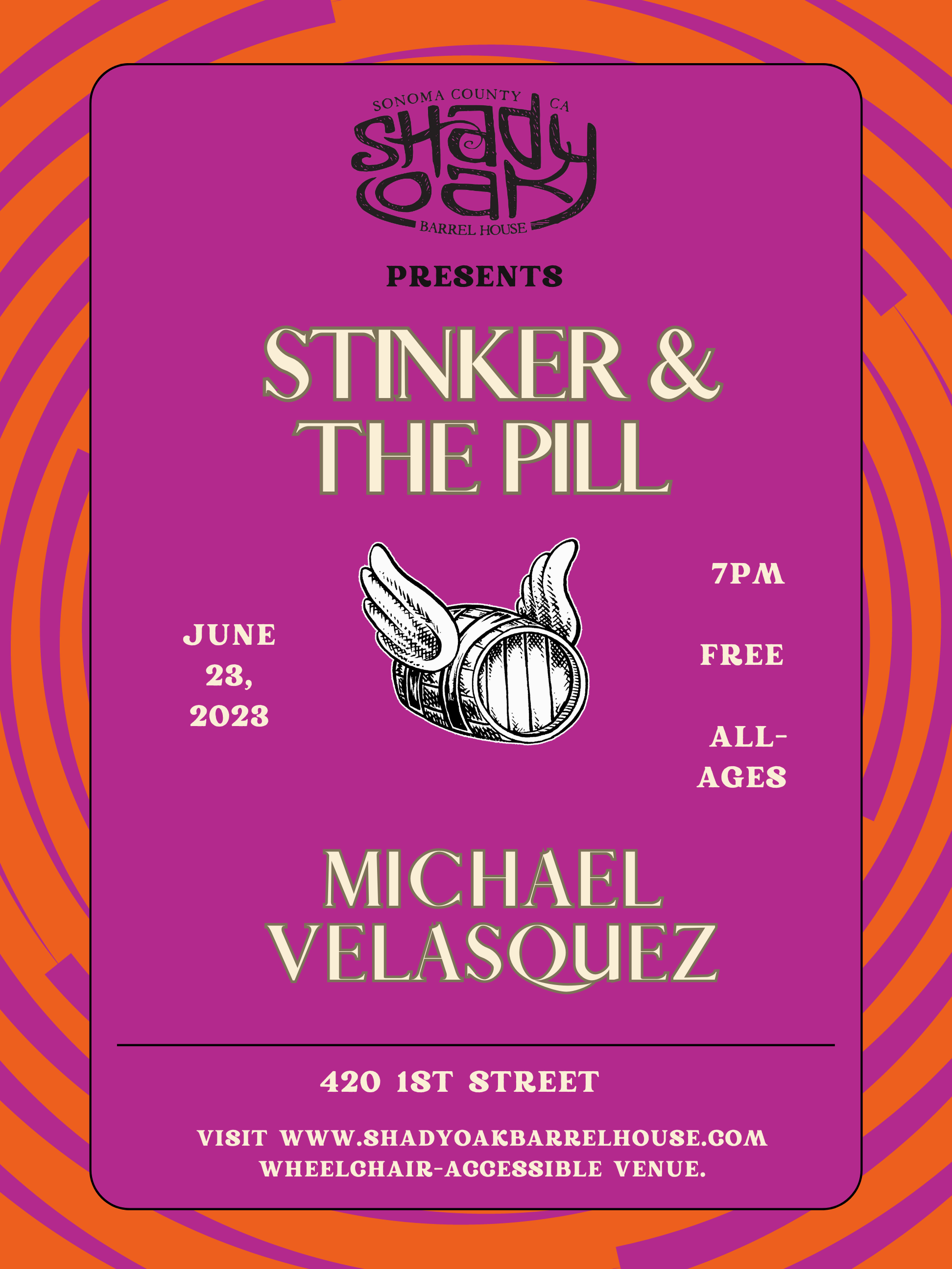 Free show with locals Stinker & the Pill (of the Spindles) with Santa Rosa newcomer Michael Velasquez. Come out for an evening of live music!