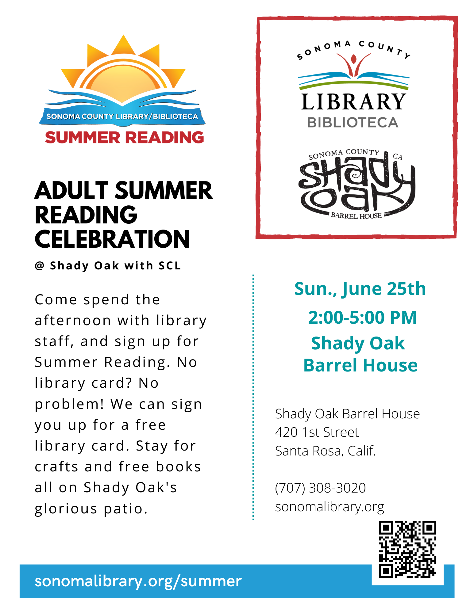 We're teaming up with the Sonoma County Library for a summer celebration!!