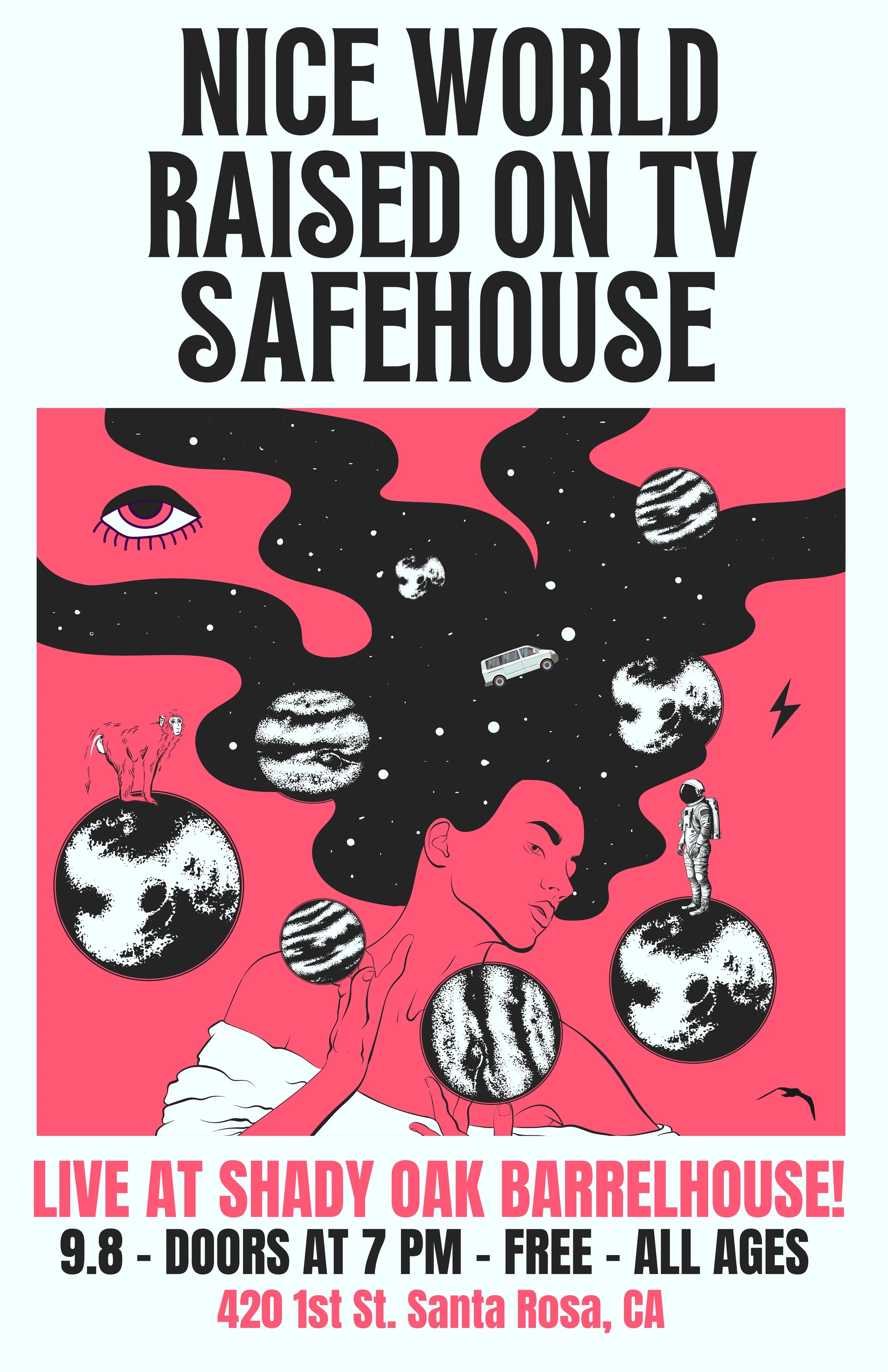 Come out for a night of live music with Raised on TV (on tour from LA), and local Santa Rosa bands Nice World & Safehouse!! Raised on TV was founded by brothers Keaton and Kacey in Los Angeles. They are about to release their fourth full studio album this Spring in collaboration with Sell the Heart Records and will be embarking upon a Summer tour to promote its release. This album marks their first release on an indie label, as well as their first album that will be put out on vinyl.