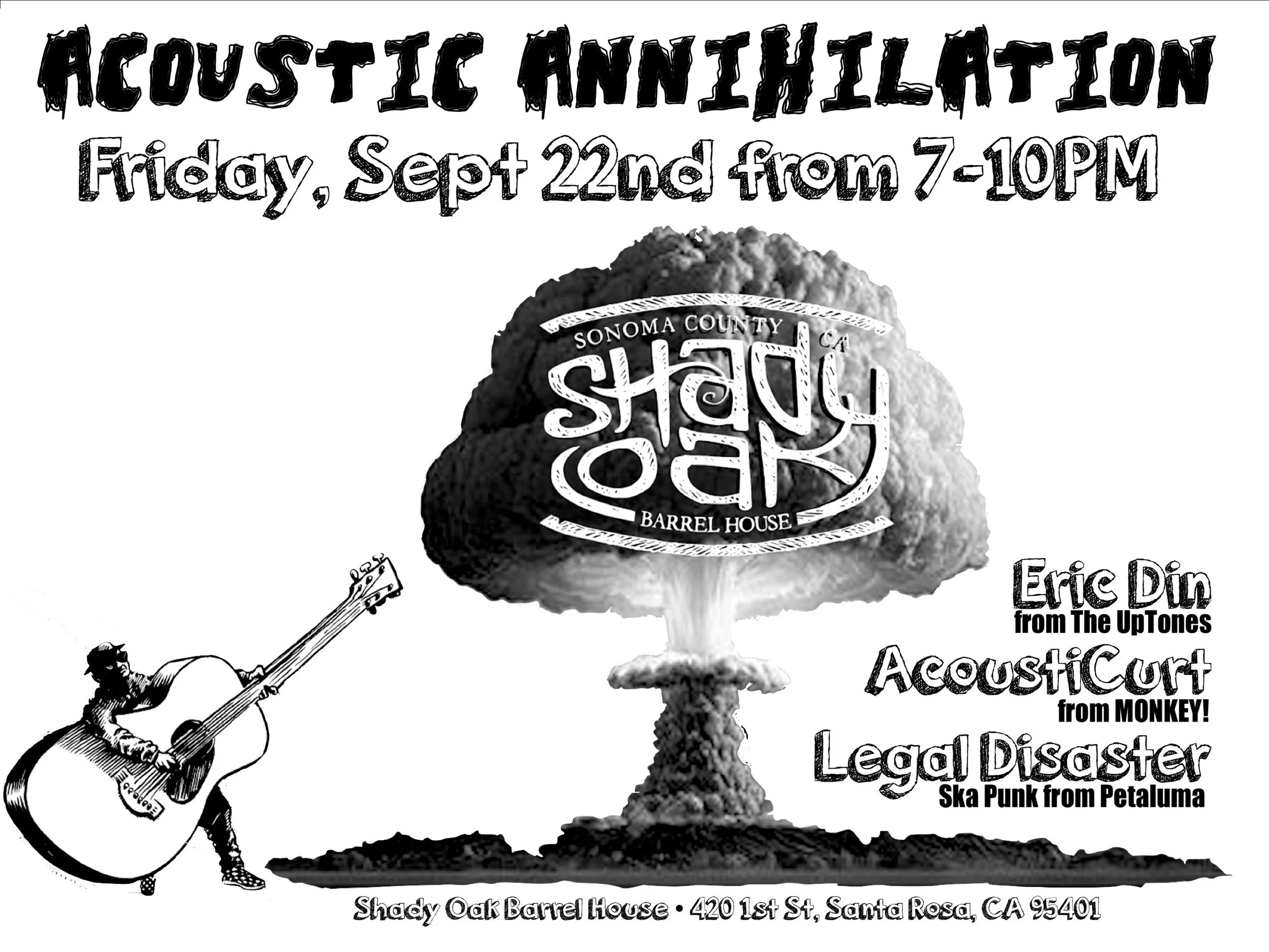 Join us for an evening of live, acoustic music with a special night of performances by side projects from local bands!! Look forward to sets by Eric Din from the UpTones, AcoustiCurt from Monkey!, and LEGAL DISASTER- Ska Punk from Petaluma!!