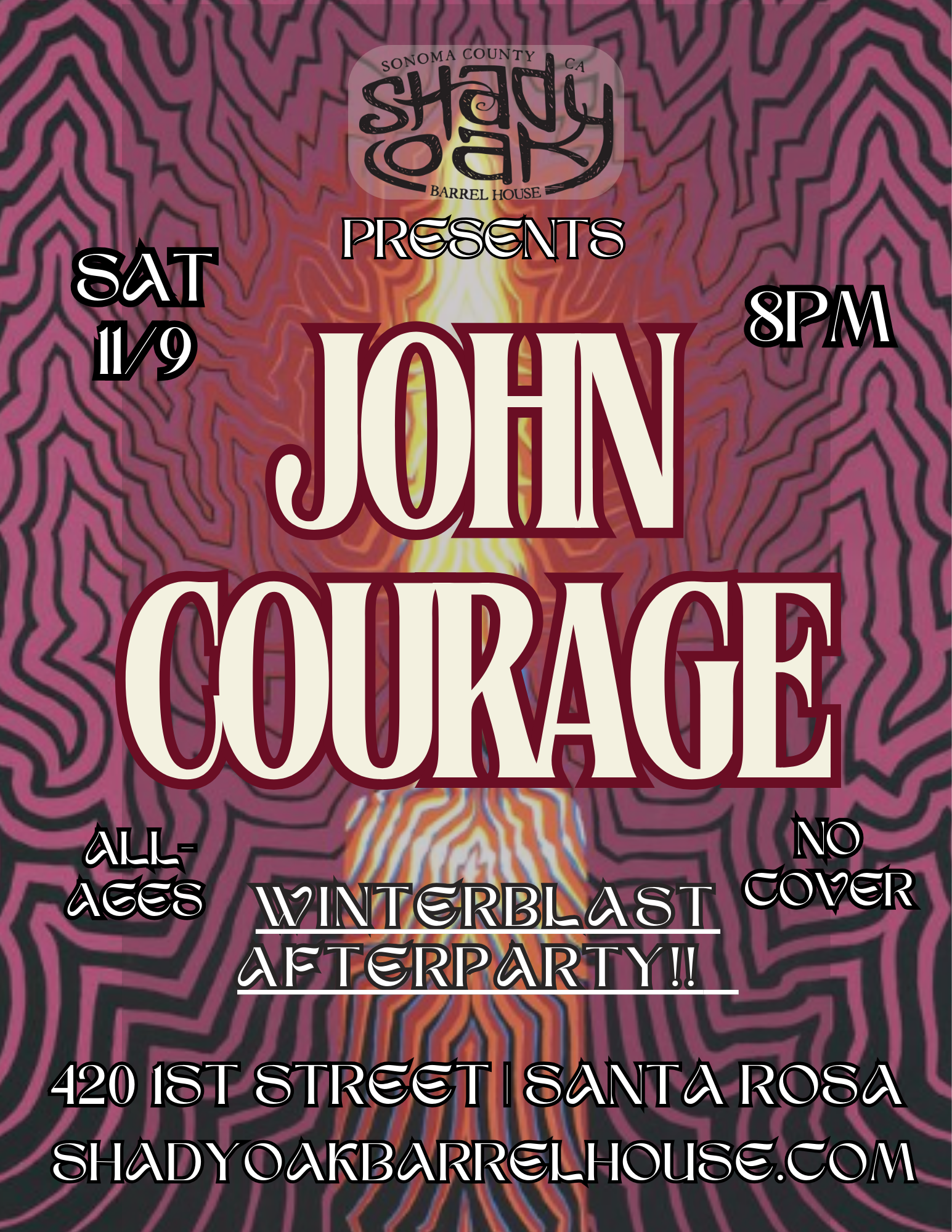 Saturday, 11/9 after the Winterblast Festival come see John Courage play!! This is a show you do not want to miss. Revel in the neighborhood for Winterblast and kick it at Shady Oak after!!! Music starts ~8pm!!