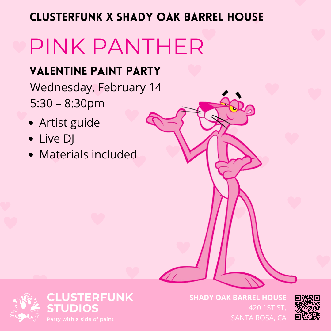 So don’t wait!! Tip toe on over to CLUSTERFUNK’s ticket page and snatch some of those Pink Panther tickets for yourself and your lover or friends! It's always better in a group!! Want a discount on tickets?? Join CLUSTERFUNK’s paint club and pay one time per month for all access to our public events. See you there!