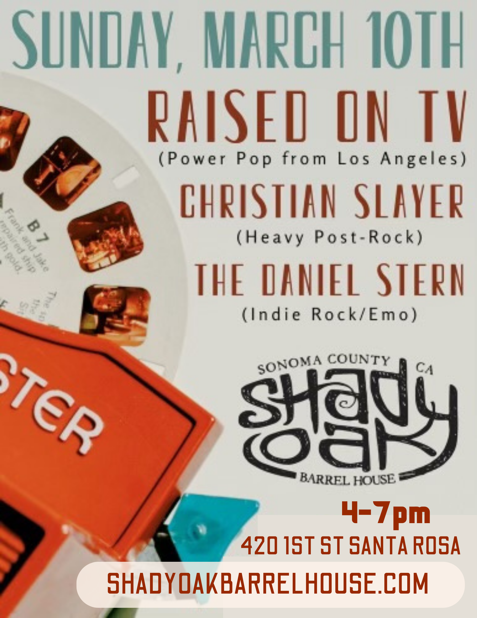 Shady Oak presents an exciting afternoon show with local groups Christian Slayer as well as the Daniel Stern and touring musicians Raised on TV!!