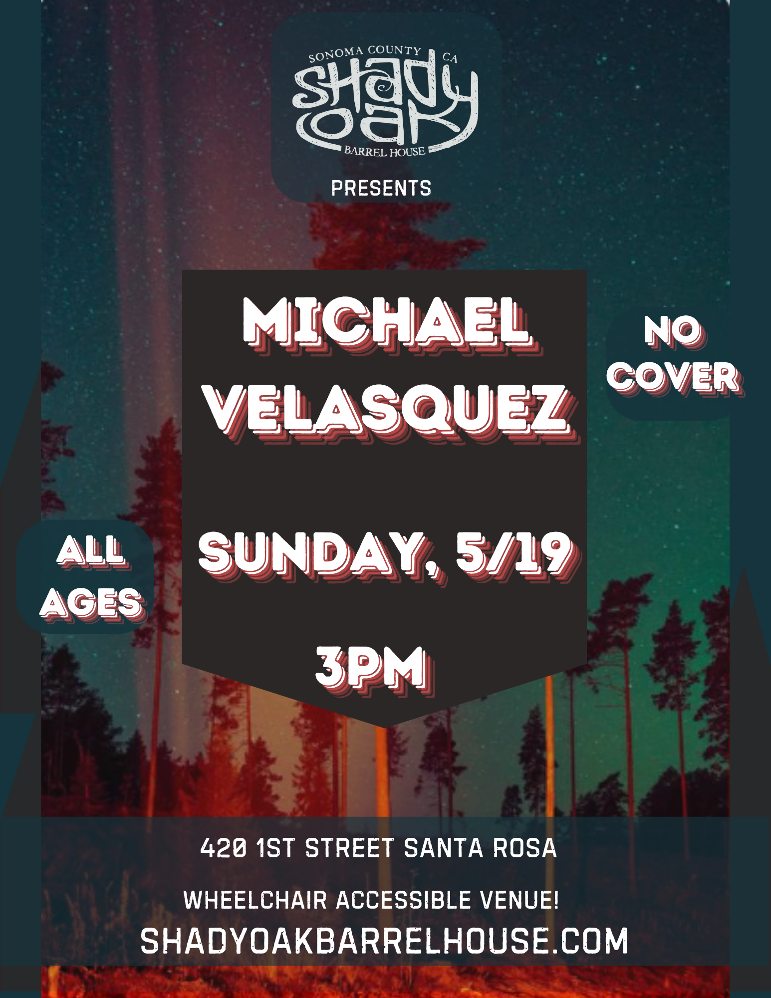 Afternoon music session with local guitarist Michael Velasquez! You might have seen him perform at Shady Oak before! We are excited to bring him and his funky loops back to the Shady Oak stage for a special day-time performance.