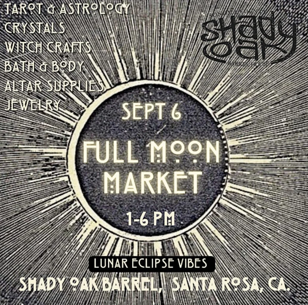🔮 Sonoma County Metaphysical Market We’re back, Sonoma County! The Full Moon Metaphysical Market returns to Shady Oak Barrel House on Saturday, September 6th from 1–6 PM in downtown Santa Rosa. Bring your friends and family for an afternoon filled with tarot readings, artisan shopping, crystals, and community vibes — all while enjoying a cold beer in the taproom or outdoor beer garden.