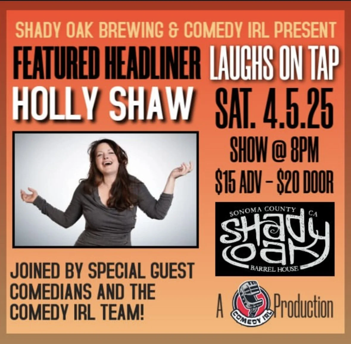 Get ready to laugh out loud! Comedy IRL Productions is bringing a night of hilarious stand-up comedy to Shady Oak, featuring a lineup of local favorites and top talent from across the Bay Area. Enjoy an evening of great craft beer, big laughs, and delicious eats from Xies Sushi Rolls. Don’t miss out on this perfect blend of comedy and community!